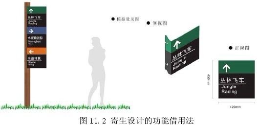 盡量利用主體本身具有的功能去實(shí)現(xiàn)標(biāo)識(shí)導(dǎo)向系統(tǒng)的功能,這種方法也是大力提倡的。例如原有主體具有的保護(hù)功能,這樣的話也能夠減少標(biāo)識(shí)導(dǎo)向系統(tǒng)本身的成本。但此種寄生借用法在使用前需要提前對(duì)標(biāo)識(shí)導(dǎo)向系統(tǒng)即被宿主的功能結(jié)構(gòu)有著清醒的認(rèn)識(shí),再進(jìn)行重新設(shè)計(jì)。如果設(shè)計(jì)方法得當(dāng),甚至可能會(huì)使寄生體產(chǎn)生意想不到的效果(圖 11.2)。