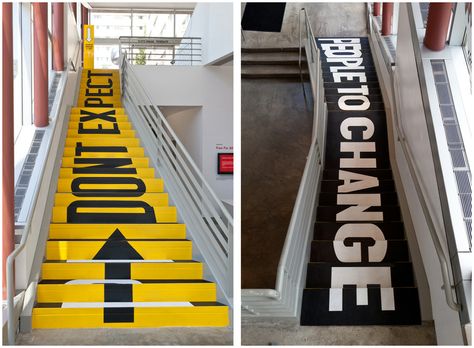 3. 每天上下班的必經(jīng)之路就是樓梯,怎么能讓它們空著呢?這其實(shí)給咱們傳播企業(yè)文化提供很好的創(chuàng)作空間。這估計(jì)是員工最愛走的樓梯了。