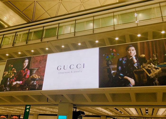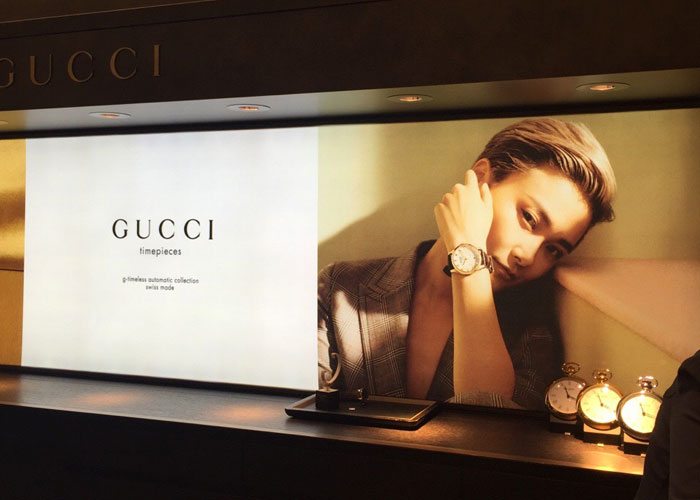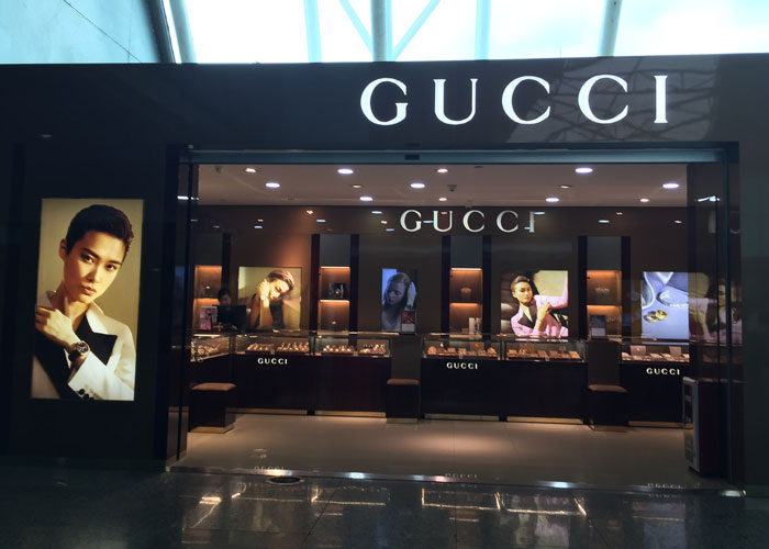 GUCCI品牌時(shí)裝一向以高檔、豪華、性感而聞名于世,以“身份與財(cái)富之象征”品牌形象成為富有上流社會(huì)的消費(fèi)寵兒,一向被商界人士垂青,時(shí)尚又不失高雅。古馳現(xiàn)在是意大利時(shí)裝集團(tuán)。古馳--永恒而經(jīng)典并深受明星們的青睞,品牌靈感源自演員,公主和名媛等杰出女性。如今其創(chuàng)作總監(jiān):弗里達(dá)·賈娜妮(Frida Giannini),將這一歷史悠久的品牌推向了全新的高度。其產(chǎn)品包括:經(jīng)典鞋履,奢華手袋,珠寶手表等。下面就跟著我們四川零貳捌成都店面門頭招牌設(shè)計(jì)公司一起來欣賞全球奢侈品品牌之一古馳的店面門頭招牌設(shè)計(jì):