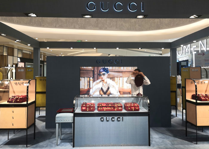 奢侈品牌店面門頭招牌設(shè)計(jì)圖片欣賞 古馳(Gucci),1921年創(chuàng)立于佛羅倫薩 ,是全球奢侈品品牌之一 ,借由其獨(dú)特的創(chuàng)意和革新,以及精湛的意大利工藝聞名于世。古馳隸屬于開云集團(tuán) (Kering Group)。開云集團(tuán)旗下?lián)碛斜姸鄻O具影響力的精品、運(yùn)動(dòng)及生活方式品牌,是時(shí)裝與配飾行業(yè)的領(lǐng)軍者。古馳的產(chǎn)品包括時(shí)裝、皮具、皮鞋、手表、領(lǐng)帶、絲巾、香水、家居用品及寵物用品等,中文譯作古馳。