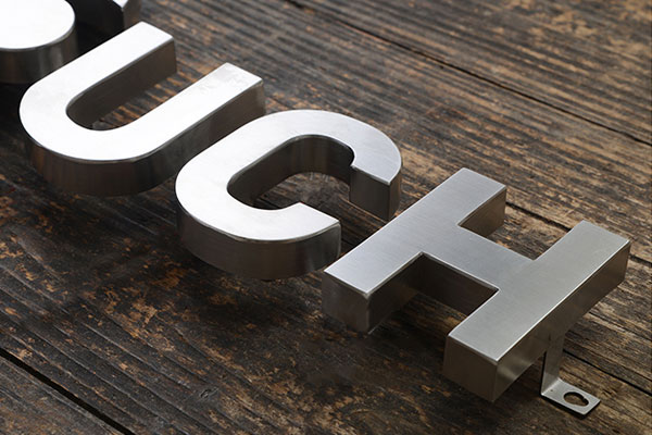 不銹鋼字是由不銹鋼切割、焊接、圍邊、打磨組成的廣告字。種類和工藝很多,分為:拉絲不銹鋼、鏡面不銹鋼、烤漆、精品系列、電鍍系列。
