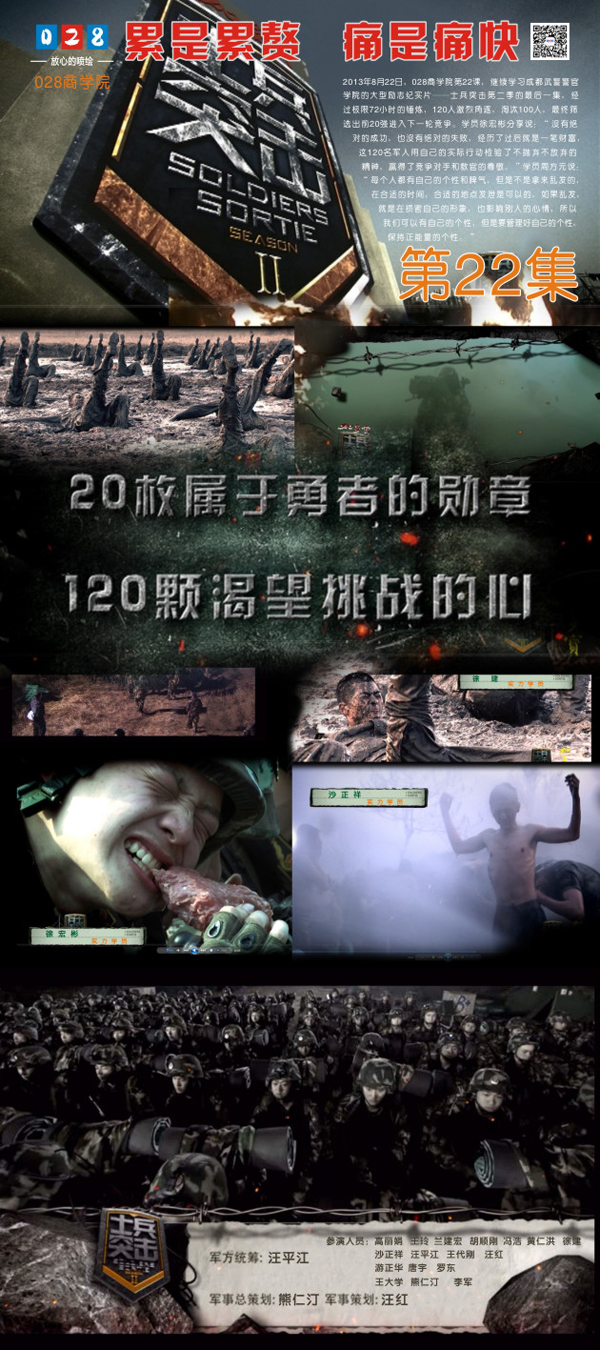 2013年8月22日,成都吸塑字廠028商學(xué)院第22課,繼續(xù)學(xué)習(xí)成都武警警官學(xué)院的大型勵(lì)志紀(jì)實(shí)片——士兵突擊第二季的最后一集,經(jīng)過(guò)極限72小時(shí)的錘煉,120人激烈角逐,淘汰100人,最終篩選出前20強(qiáng)進(jìn)入下一輪競(jìng)爭(zhēng)。營(yíng)銷部學(xué)員徐宏彬分享說(shuō):“沒(méi)有絕對(duì)的成功,也沒(méi)有絕對(duì)的失敗,經(jīng)歷了過(guò)后就是一筆財(cái)富,這120名軍人用自己的實(shí)際行動(dòng)檢驗(yàn)了不拋棄不放棄的精神,贏得了競(jìng)爭(zhēng)對(duì)手和教官的尊敬。”學(xué)員周方元說(shuō):“每個(gè)人都有自己的個(gè)性和脾氣,但是不是拿來(lái)亂發(fā)的,在合適的時(shí)間,合適的地點(diǎn)發(fā)泄是可以的,如果亂發(fā),就是在損害自己的形象,也影響別人的心情,所以我們可以有自己的個(gè)性,但是要管理好自己的個(gè)性,保持正能量的個(gè)性?!?nbsp;