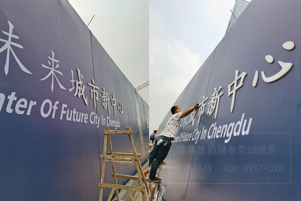 天府成都未來城市中心商務(wù)區(qū)建設(shè)工地施工圍擋噴繪制作安裝